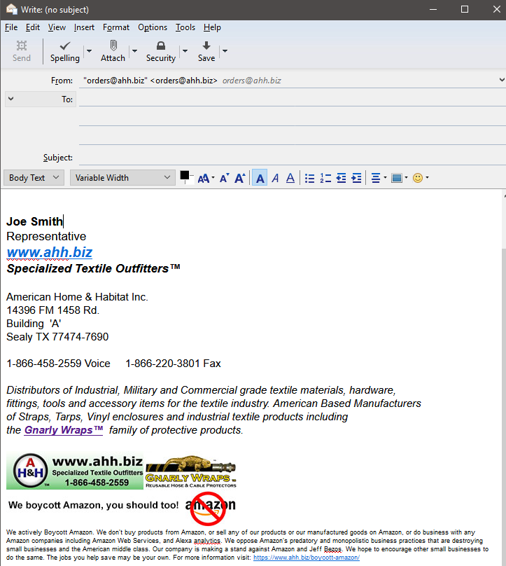 e-mails that show the Boycott Amazon logo and your reasons for doing so. Boycott Amazon