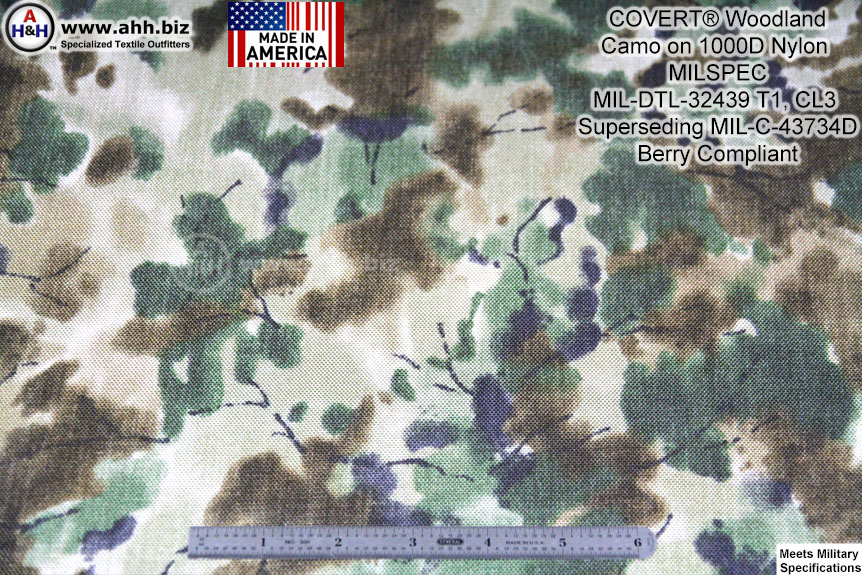 Fabric> Camouflage Materials> COVERT® Woodland Camo on 1000 Denier Nylon Mil-Spec