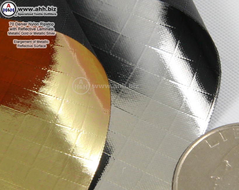 Consists of a 70 denier ripstop nylon base with a laminated mirror finish on one side.
