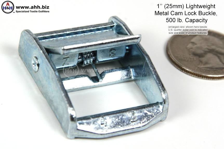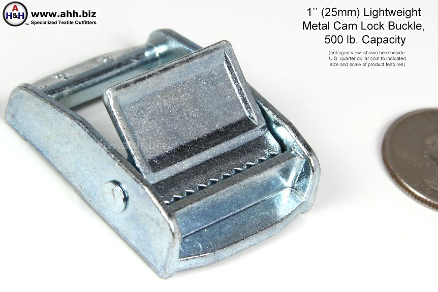 This industrial style buckle is rated for 500 lbs. static load. Constructed of very lightweight rust-proof, corrosion resistant die-cast Alloy. These 1 inch cam buckles are ideal for tie down straps, and applications where size adjustment is more frequent than full detachment, and where a tensioning device (such as a ladder lock) would not be heavy enough. Recommended for use with Nylon Webbing. Fast and easy to tighten just by pulling webbing that is threaded out the top of the buckle. Also called tie down buckles.