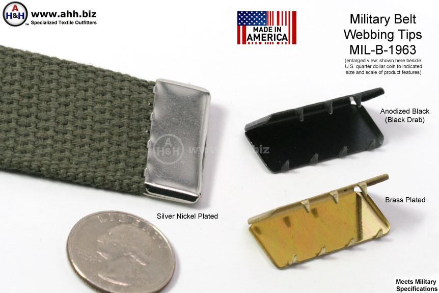 Search Terms / Also Called: web buckle tips, military belt ends, american belt tip, web belt buckle tips