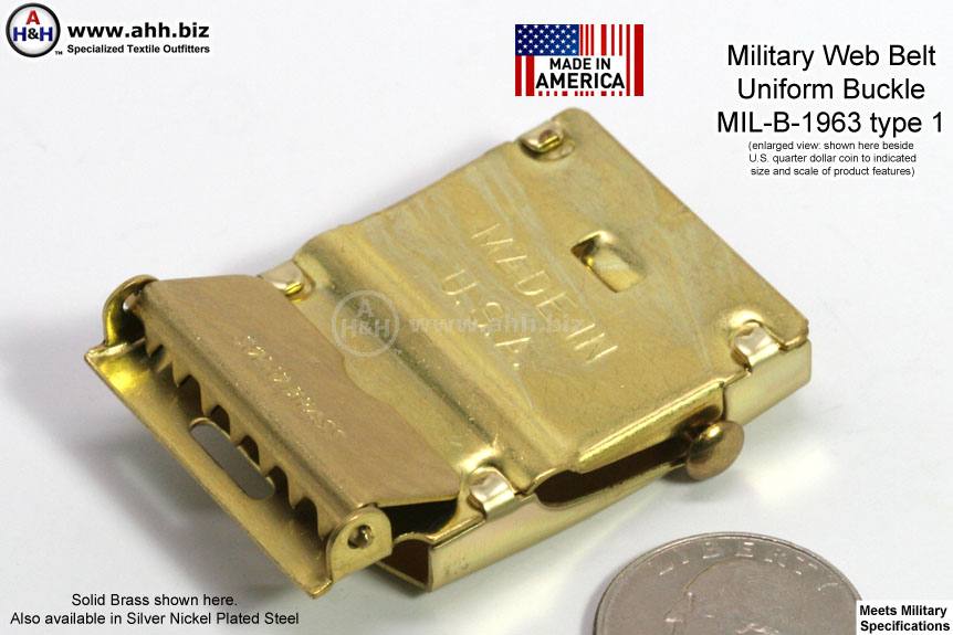 fits 1 1/4 inch (32mm) webbing. Mil-Spec MIL-B-1963 Type 1