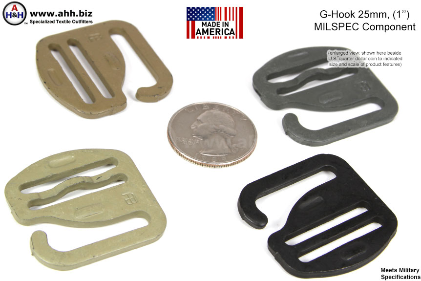Search Terms / Also Called: military g hook (1 inch), Mil-Spec Component hook, military hook webbing