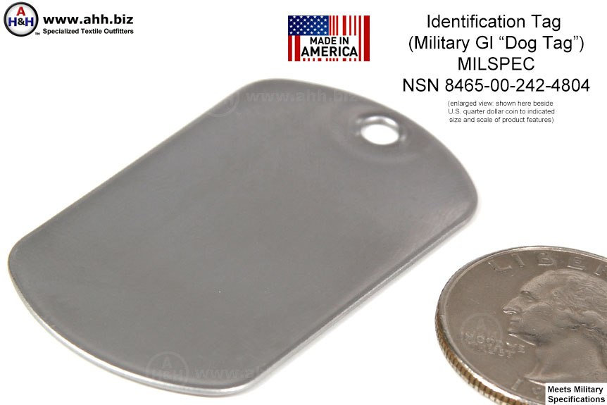 Search Terms / Also Called: military issue dog tag, stainless steel dog tag, identification tag, NSN 8465-00-242-4804
