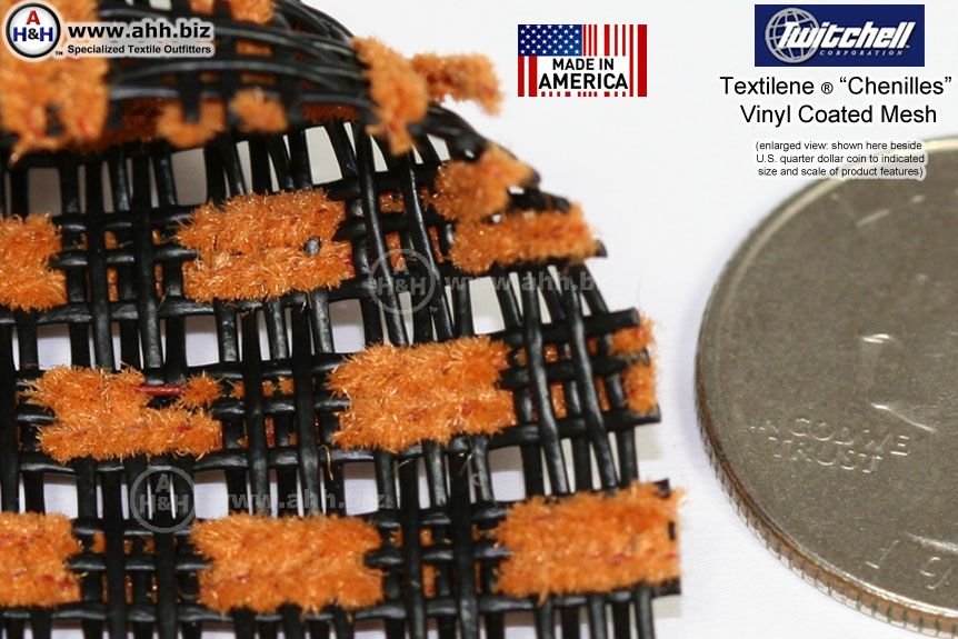 Textilene® Chenille is a decorative composite mesh that consists of a 3X5 weave with soft "fuzzy" resistant Olefin fiber tufts integrated into the weave. These Olefin tufts give the material a softer, warmer feel that tends to stick less to exposed skin. Available in 5 warm colors. Cut to order in One Yard increments. One Yard = 54 inches wide X 36 inches long (Approximately)