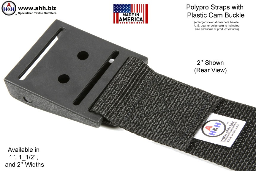 Made with our Poly-Pro webbing and our Plastic Cam Lock Buckles. Ends of webbing are heat sealed for a neat look and to prevent fraying. Double Stitched on an industrial sewing machine with our Super Heavy duty Nylon Thread.