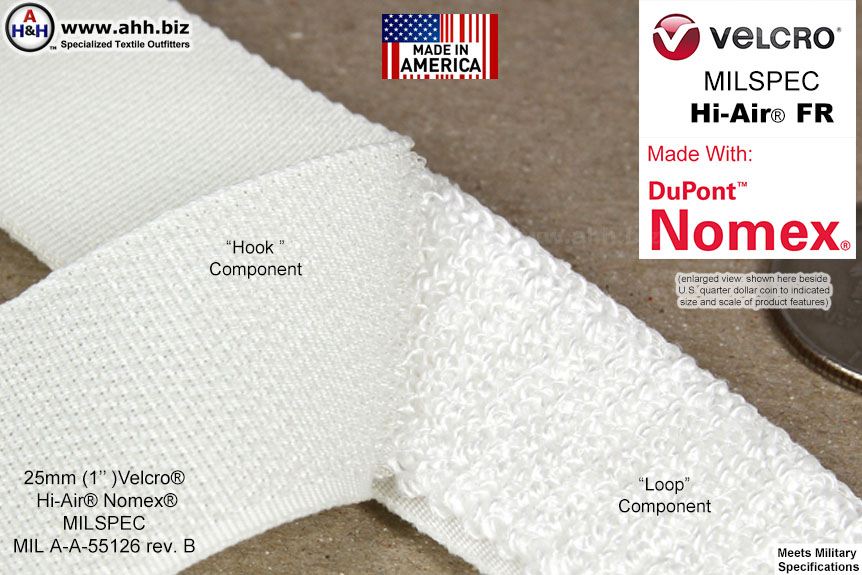 Search Terms / Also Called: nomex velcro, milspec velcro, fire resistant velcro