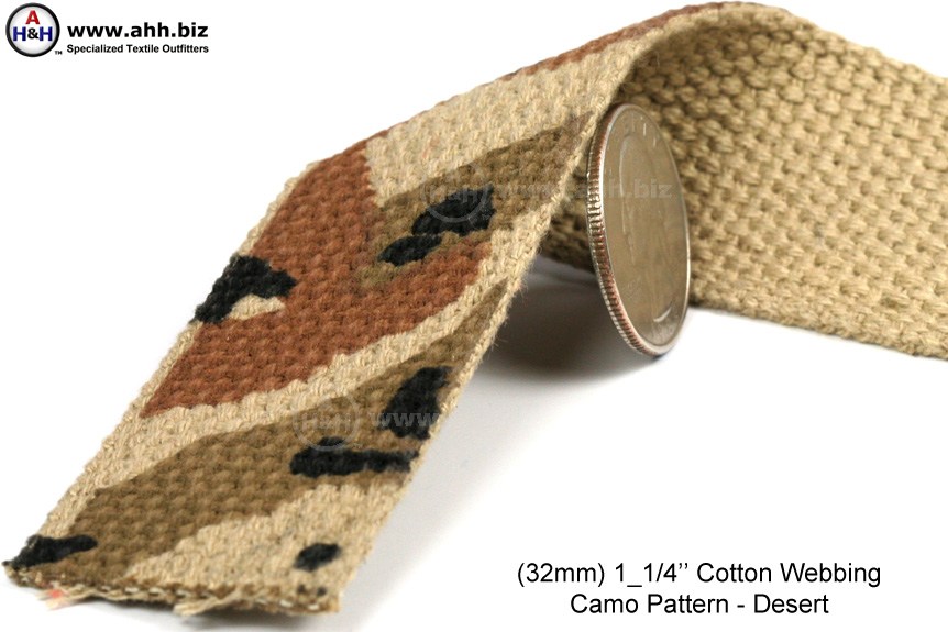 1.25 inches wide (32mm) with Desert Camouflage Pattern