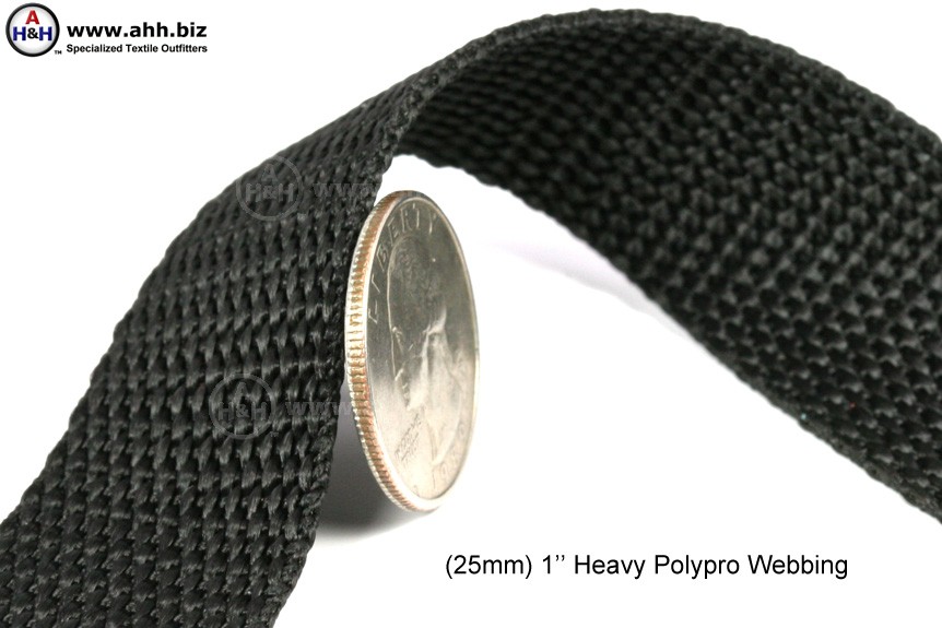Heavy Poly Pro webbing is better suited for buckles and hardware that utilize friction to hold the webbing in place. This Heavy Poly webbing is thicker and has a coarser weave than regular polypro.